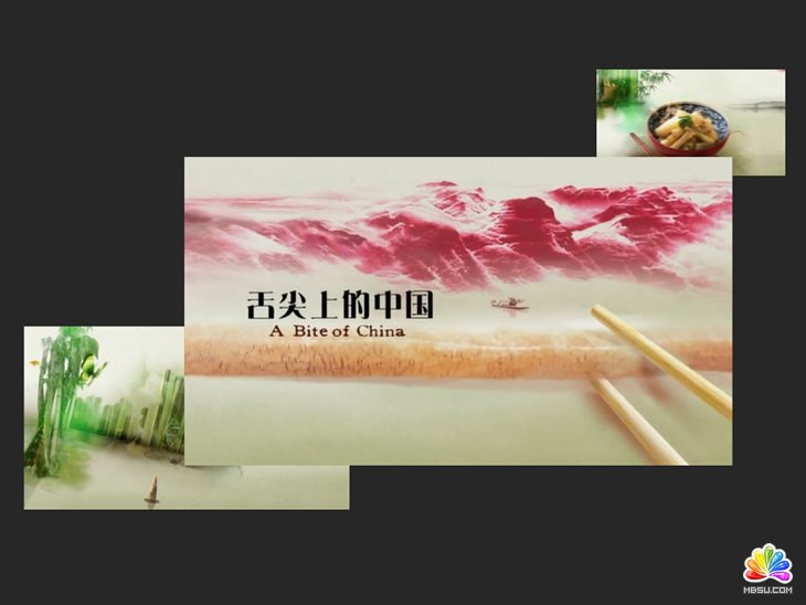 這是舌尖上的中國的節(jié)目的片頭截圖,是不是應正了之前的分析,水墨、食物、國畫、餐具。