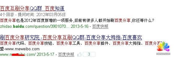 (1)尋找百度互刷平臺。百度分享并非一被裝上就會被很多用戶點擊分享的,除非你的網(wǎng)站是非常有名氣的網(wǎng)站。因此,對于我們的小網(wǎng)站來說,裝上百度分享的第一步就是尋找到百度分享互刷平臺,這里推薦大家加入一些互刷QQ群,具體自己百度去找。