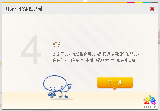 這是某一個論壇給新用戶的引導(dǎo)界面�?蓯鄣目ㄍㄐ蜗蠼o人一種親切感,會喜歡上一步步“被”引導(dǎo)的過程。同樣的,我們也可以將“上傳頭像引導(dǎo)”“發(fā)表帖子引導(dǎo)”這樣的新手教程或者是舉行一些新活動的活動步驟都可以采用引導(dǎo)式的設(shè)計,在引導(dǎo)頁面中添加一些卡通人物,會顯得非常有趣。相比之下,那些用帖子來闡述活動規(guī)則、新手教程的,卻沒多少用戶愿意買賬,愿意花時間仔細看完。