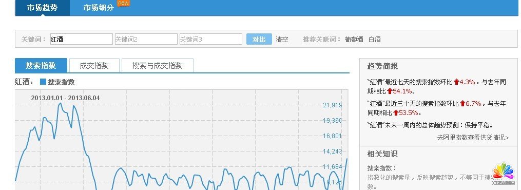 下面輸入紅酒這個詞,來搜索一下,看看具體的數(shù)據(jù)。