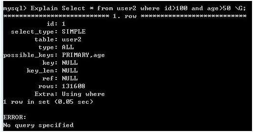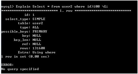 User 表中的數(shù)據(jù)和 User2 表中的數(shù)據(jù)是一樣的,索引結(jié)構(gòu)也是一樣的,只不過它們的存儲引擎不同。在圖1中,查詢用到了PRIMARY主鍵索引,而查詢優(yōu)化器預(yù)估的結(jié)果大概在65954行左右(實(shí)際是131513);在圖2中,查詢卻沒有使用索引,而是全表掃描了,返回的預(yù)估結(jié)果在131608行(實(shí)際是131509)。