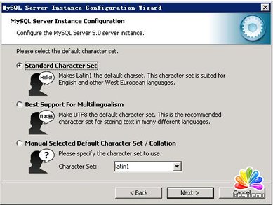 西文編碼,第二個(gè)是多字節(jié)的通用utf8編碼,都不是我們通用的編碼,這里選擇第三個(gè),然后在Character Set那里選擇或填入“gbk”,當(dāng)然也可以用“gb2312”,區(qū)別就是gbk的字庫容量大,包括了gb2312的所有漢字,并且加上了繁體字、和其它亂七八糟的字——使用mysql的時(shí)候,在執(zhí)行數(shù)據(jù)操作命令之前運(yùn)行一次“SET NAMES GBK;”(運(yùn)行一次就行了,GBK可以替換為其它值,視這里的設(shè)置而定),就可以正常的使用漢字(或其它文字)了,否則不能正常顯示漢字。按 “Next”繼續(xù)。