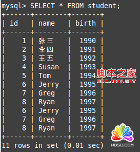 然后往里面插入幾條數(shù)據(jù)