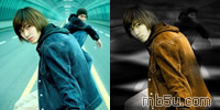 - 本教程摘自模板無憂本教程主要是介紹藍色格調非主流色的調制方法,主要思路:使用濾鏡磨皮,然后調曲線選擇需要更改的顏色通道,最后加上一些裝飾效果就可以制作出
