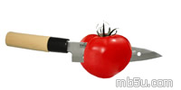 - 這個小實例結(jié)合Photoshop和Imageready的制作了一個刀切西紅柿的有趣效果,先看下完成圖吧: 制作步驟:1、打開一張素材圖片,里面有一個完整的西紅柿和一個切開的西紅柿。 2、用磁性套索工具勾選出完整的西紅柿,Ctrl J復(fù)制一層,命名為番茄1。 3、同樣方法勾選出切開
