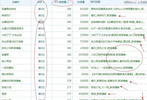 看下面的圖,你就明白了。這么多擁有搜索量的詞,新浪博客都是排第一的。