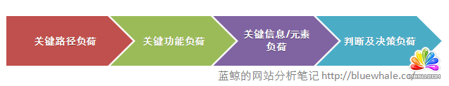 任務(wù)負(fù)荷是指完成某項(xiàng)特定任務(wù)或操作時(shí)訪問者所需付出的努力。這些努力可能是點(diǎn)擊一個(gè)鏈接打開新的網(wǎng)頁(yè),從鼠標(biāo)切換到鍵盤的動(dòng)作,切換輸入法的時(shí)間,也可能是使用鍵盤輸入文字,甚至是尋找關(guān)鍵信息時(shí)移動(dòng)鼠標(biāo)的次數(shù)或眼球移動(dòng)的次數(shù)和距離。當(dāng)然,目前并沒有這么夸張,我們只需簡(jiǎn)單的記錄鼠標(biāo)和鍵盤與網(wǎng)站交互的動(dòng)作就可以了。(如果你有興趣將這部分的監(jiān)測(cè)進(jìn)行細(xì)化,可以使用文章結(jié)尾處推薦的工具進(jìn)行更加深入的追蹤和測(cè)試)和前面的兩個(gè)指標(biāo)一樣,如果是一條封閉的關(guān)鍵路徑,那么任務(wù)負(fù)荷就是指訪問者在整條路徑中為了完成目的所采取的動(dòng)作次數(shù)。而無論是封閉還是開放性的路徑,任務(wù)負(fù)荷都可以分解為完成任務(wù)所需的負(fù)荷,使用某個(gè)功能所需的負(fù)荷,查找特定信息及元素所需的負(fù)荷,以及進(jìn)行判斷和決策的負(fù)荷。