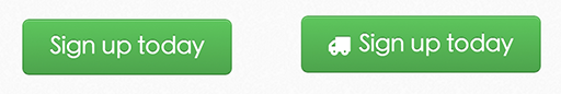 接著將引用寫入網(wǎng)頁頭部中,代碼為 ,這時候我們可以隨時在網(wǎng)站上任意地方自由使用這些圖標(biāo)字體了,如要想將一個卡車圖標(biāo)添加到注冊按鈕的話只需聲明一下就可以, Sign up today。同時為了防止加入圖標(biāo)字體后引起按鈕拉伸變形,還需要一點點額外的工作,將按鈕寬度加大一點(.jumbotron .btn i { margin-right: 8px; })。最后效果如下: