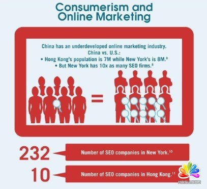 正如信息圖中所示,雖然中國有如此多的互聯(lián)網(wǎng)用戶,但由于缺乏存儲供應(yīng)商和網(wǎng)絡(luò)營銷公司,中國的網(wǎng)絡(luò)基礎(chǔ)設(shè)施依舊不夠完善,這給外商提供了商業(yè)機(jī)會,這些機(jī)會主要包括:進(jìn)出口貿(mào)易,網(wǎng)絡(luò)營銷以及自存設(shè)備供應(yīng)等。