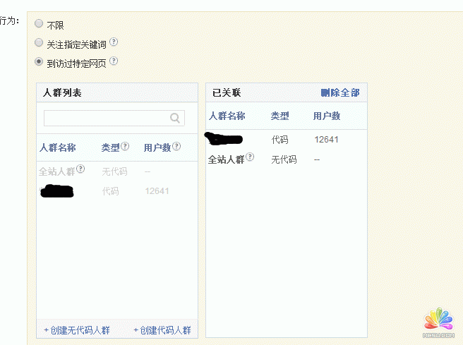 全站人群是,百度全站人群為百度幫您收集到達(dá)過您網(wǎng)站的人群,一般不精準(zhǔn),建議不要加入關(guān)聯(lián)人群。