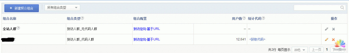 建立受眾人群:點擊受眾組合,建立代碼人人群