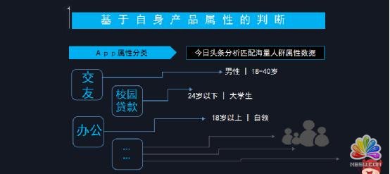 第一個部分就是基于自身產(chǎn)品的屬性的判斷,做一個產(chǎn)品,首先要對自己的產(chǎn)品的屬性有一個基本的判斷。比如說你是一個交友的,那么以男性居多,然后年齡的話控制在年輕人18歲到40歲左右。校園貸款的話,24歲以下的大學生,因為他是大學生。雖然大家對自己的產(chǎn)品有一個基本的判斷,但是基本的判斷不一定正確。所以我們經(jīng)常會陷入一種,我覺得我的產(chǎn)品應該怎么樣?但是你的感覺一般是不對的。比如我們這兩天經(jīng)常出去投放,可能你會覺得高大上,那我投放出去之后,發(fā)現(xiàn)沒有人點擊,這就是判斷錯誤的。假如用戶說:你們出了一款特別low的、這是什么東西,然后點擊爆表。效果就是市場用數(shù)據(jù)來檢驗,這才是正確的。